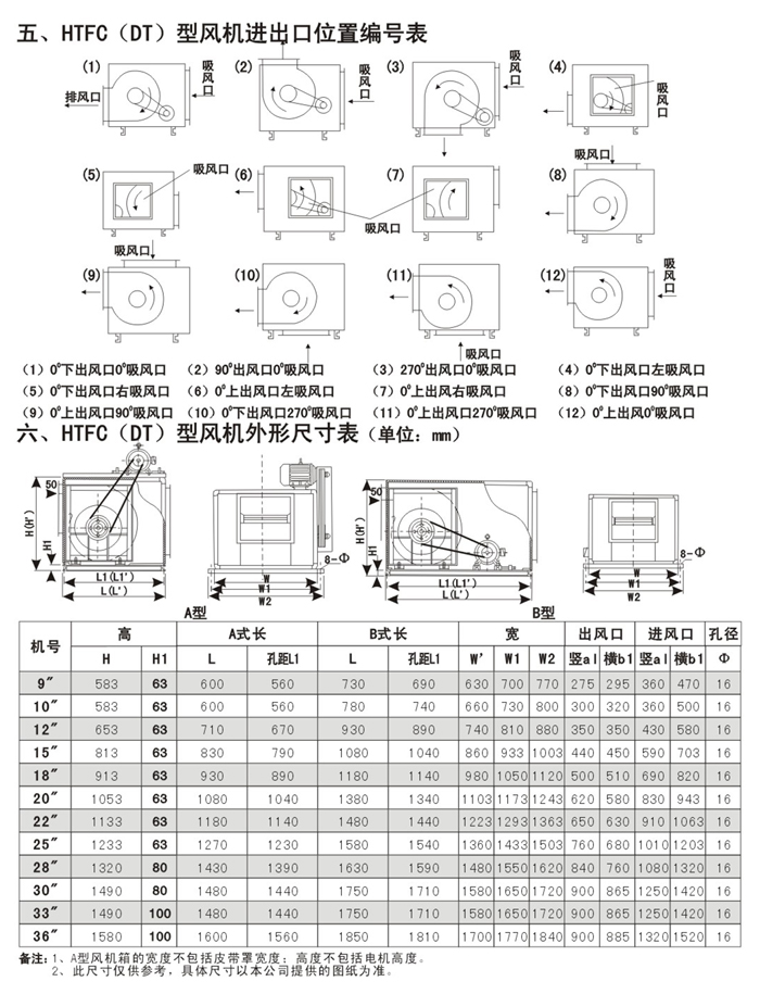 4、HTFC(DT)系列低噪声消防通风(两用)柜式离心糖心vlog 分为A型和B型两种类型,A型电机装在箱体外,用于消防排烟;B型电机装在箱体内,用于通风换气。