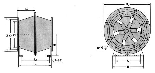 注:GXF-Ⅱ型亦可加装进出口消声器,加装方法同XGXF-Ⅰ型,一般可消声6-10dB(A)。